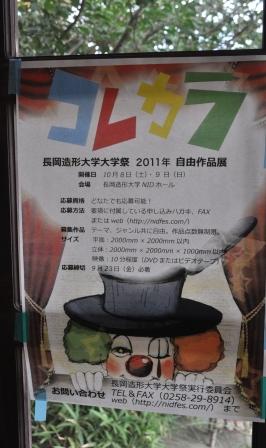 入口扉の一等地に、「弥彦・野外アート展」のポスターが「長岡造形大・学祭(コレカラ展)」といっしょに掲げられていたので、写真を撮ってみた次第。ちなみに同店では現在「扇絵展(by 横山表具店)」を開催中であった。(26日まで)