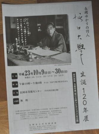 長岡造形大の学祭は10月8日9日で、弥彦・野外アート展の開会式も10月9日である。堀口大學の生誕120年記念展を10月に美術センターで開催するらしく、マイスキップの次号(10月号)に記事を入れたのだが、それも10月9日スタート。オープン記念の講演会もその日にある。前に書いた「ブルーノートジャズオーケストラ・コンサート」も10月9日だから、なにやらこの日はいろいろぶつかっているようだ。