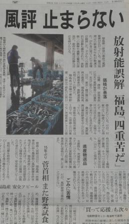 特産のイチゴが売れない、と記事にある。もし「風評」で売れないのだったら話は簡単で、別に菅首相がイチゴを食べるパフォーマンスをやる必要もなく、測定器があるのだからイチゴの放射線量を測ればよい。福島県内各地のイチゴを測定し、「汚染されていないイチゴ」だけが出荷されていることを声を大にして言えばよい。朝日新聞も変なイメージ戦略で済ます前に、イチゴの放射線量を調べてその数値を出したうえで、「現状のイチゴは安全で、売れないのは風評である」と結論づけて書けばよいではないか。当たり前の話である。それならば理解できるし、「誤解してました。すみません」と脱帽するのだが、そういった、ちょっと調べればわかりそうなことも調べずにいい加減にイメージでまとめるから、逆に疑ってしまうわけである。