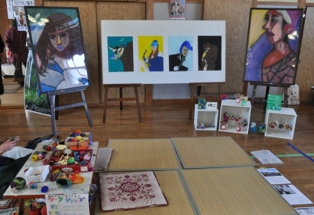 毎年この時期に開催されている同イベントには、私も昨年まで3年連続で参加していたのだけど、今回は出展せず観に行くだけである。池の廻りで恒例のように野外インスタレーションを展開する新潟チームは、新規メンバーも加わり作品もよかったのだが写真にはあんまりうまく撮れず。右は、屋内(寺の一角にある「道場」のなか)で展示とワークショップをしていた「風の工房」のブース。参加していることは知らなかったが、沢山のブースがあっても春原さんの作品は強烈で、すぐに気づいた次第。