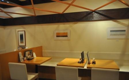 また、左はいまの店内風景ですが、現在(4月末日まで)舟見倹二さんのシルクスクリーン版画を展示中です。