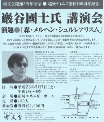美術評論家、フランス文学者の巖谷國士の講演会が、文学と美術のライブラリー「游文舎」の開館3周年記念として開催される。