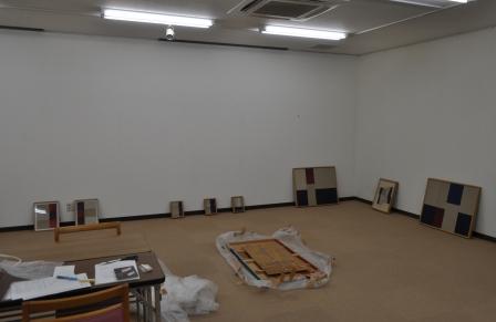 今月は舟見倹二展となる。作品は作家から若干多めに届いていたが、机上の想定ではその中から5点展示と考えていた。が、実際に作業を始め出したら、「机上の想定」から構成をちょっと変えたくなった。そのほうが空間的に面白いと思ったからだが、つまりは机上と実際とはやはり違う(こともある)というわけである。前にブログでも「出展は5点」と書いていて、各メディアにもそう伝えていたのだけど、急きょ1点プラスして計6作品の展示となった次第。