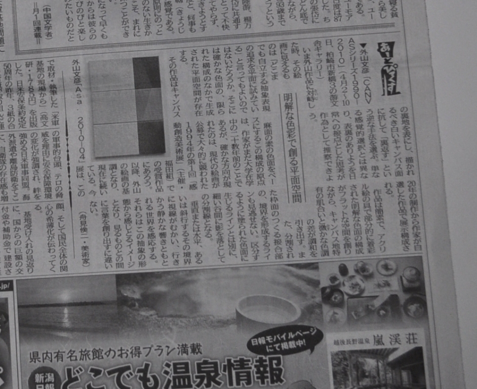 今週土曜から始まる外山文彦展について寄稿がなされています。筆者は美術家の舟見倹二氏。