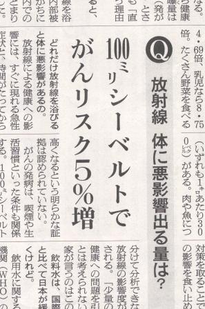 100倍になっても5%しか危険は増しませんよ(=かなり安全に見積もっているものなんだから安心してくださいよ)、と言っているように見えるがどうなのだろう。記事では肝心の「単位」が明確でなかったが、放射線レベルの話でよく報道で出てくる単位「1時間当たり」のわけは到底ないので、「1か月当たり」なのか「1年当たり」なのか、さもなければ「一生当たり」なのか?はっきりと示されていないそこのところが、まず気にかかっている。