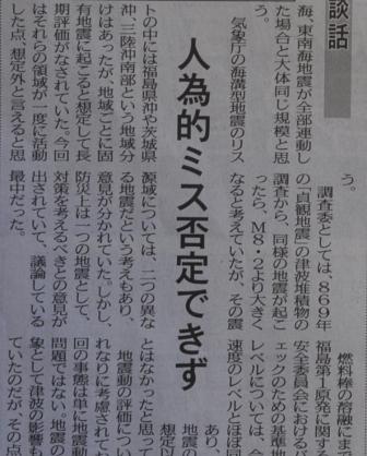 ふつうに考えればもちろんそんなことはなく、人はミスをすることを前提に、十分なチェック機能をシステムのなかで設けるわけだから、この「人為的ミス否定できず」という能天気な識者談話に仰天してしまった次第である。非常用発電機が故障したのがそもそもの原因らしいが、故障の理由は「津波で海水に濡れたから」らしい。海水につかれば機械は故障するだろうというのは、誰でもわかること。津波があることも当然想定できるし、その対策も万全になされていなければならないから、この故障原因を聞いてそのままは理解しづらい。 新聞に寄稿した「識者」たる大学教授氏は、「緊急用の発電機が動きさえすれば問題はなかったわけで、保守・管理など、人為的なミスの可能性も…」と結んでいるが、論としてはあまりにお粗末である。