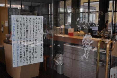 エントランスホールにある「ななかまど」と名付けられた館内喫茶店は、今月いっぱいで経営者が変わるらしい。店頭に貼り紙があり。