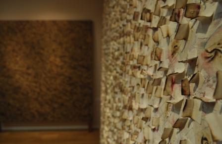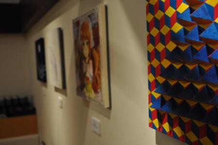 長岡小嶋屋では“蕎麦×アート”と題しての店内作品展示を今春からおこなっておりますが、シリーズ第7回展にして初めての試みを今回ふたつ。今までの「個展」型式に対して今回はグループ展で、1人1作品×7人という型式になっていることと、もうひとつ、初めて半立体作品(壁面レリーフ)が登場したこと。学生らしい、いい味が出ていると思います。