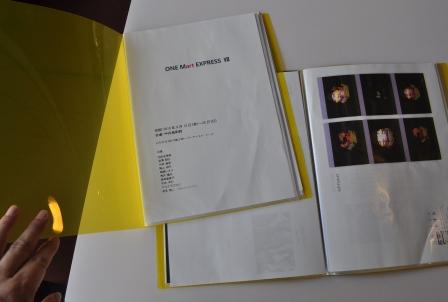 毎回思うのだが、この展覧会は会場空間を撮影で表現するのが簡単ではない気がする。ということで、出展作家のプロフィール(コメント)を入れた「ファイル」を撮ってみた(左)。この黄色いファイルは来場されたかたが自由に見れるように、会場内に置いています。