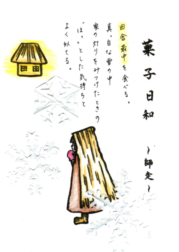一黙窯のインフォメーション棚に、かさはら菓子店のリーフレット(?)「菓子日和」が置いてあるのを見つけた。