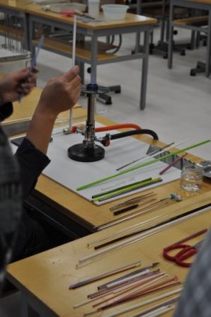 昨日は来年開設される“市民工房”の体験教室があり、セキネさんの取材に私も午前中のみつきあって、いっしょに様子を見させてもらった。この日はガラス工芸講座で、トンボ玉作りの一日体験教習。