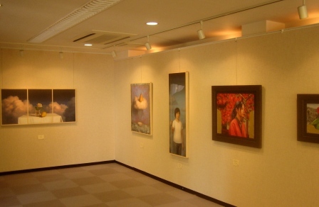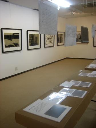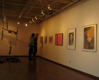 展覧会は30日(金)からのスタートですが、会場風景をとりいそぎ左に。画面に写っているのは、今回の出展者のひとり、清水くん。