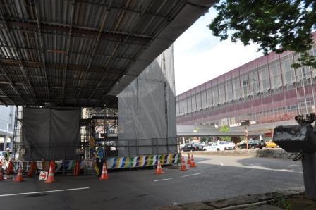 写真はペデストリアンデッキ建設工事進行中の長岡駅前。日々進行するさまを面白く観察している。