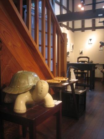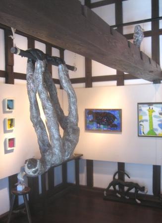 展覧会は20日からの開催となるが、とりあえずは会場写真を右上に1枚。吹き抜けの梁には、本濃研太さんの「なまけもの」のオブジェをぶらさげている。アート動物園らしい、ユニークな空間となりました。