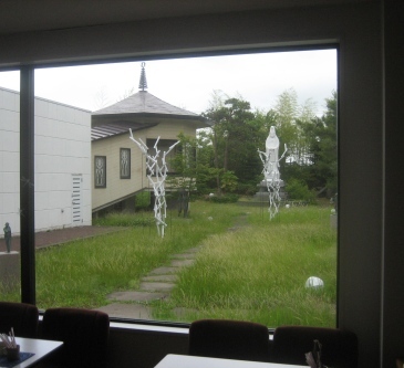 ティコーナーの大きな窓から臨める中庭の作品→