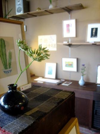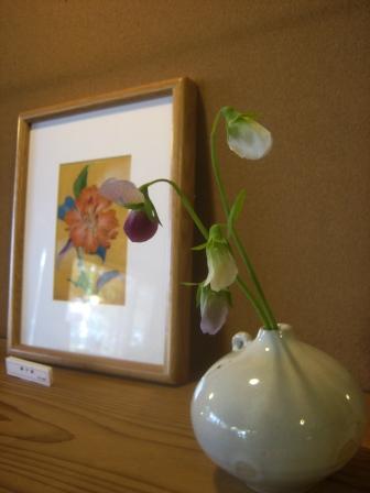 今回の個展では、一黙窯(広川智子さん)の陶に野の花を活け、私の花の絵とのコラボレーションを楽しんでいただけたらと思います。