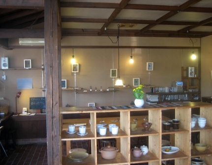 手前の棚には、一黙窯・広川さんの陶器が置かれています。