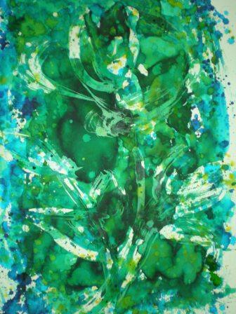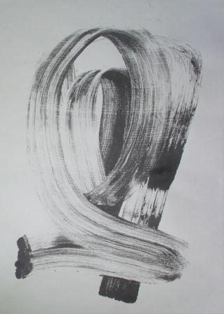墨・和紙などでのモノタイプの版画。