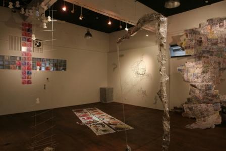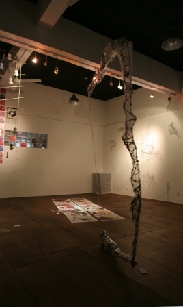 右上の写真はその一部分。といってもこれではまるでなんだかわからないのだが、体験型作品のようでもあるし(本人は「インスタレーション」と言っている)、つまるところ会場に来て実際にみてみないと始まらない、といったところか。