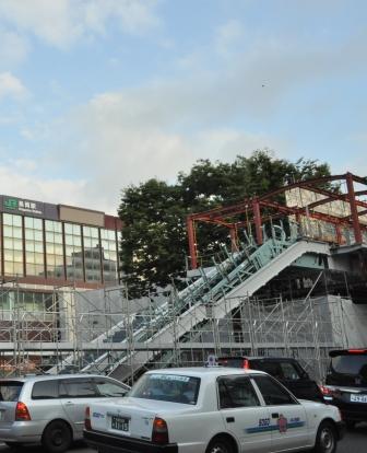 下は、大規模工事が進んでいる長岡駅前のもよう。今朝は小嶋屋の展示をすませたあと、帰路に大手通に立ち寄ったのだが、なにやらものすごい大行列。長岡花火の指定席券チケット、再販分の売り出し日だったようですね。