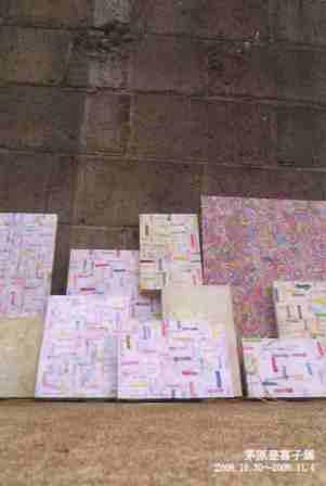 若手作家のインスタレーション&平面。インスタレーションの素材はドローイングされた紙を長さ10メートルくらいにひたすら繋げたもので、展覧会開催直前の10日間、画廊の2階にある空きスペースを借りて公開で制作したらしい。面白いと思う。