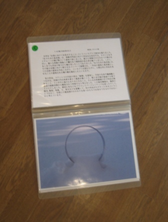 今回の展示は、中庭を使った「菊の支柱竹と熊鈴と結束バンドによるインスタレーション、ギャラリー空間での参加型作品「更に、大きな円を描くこと」のほかに、ファイル展示による「マイベスト」があります。