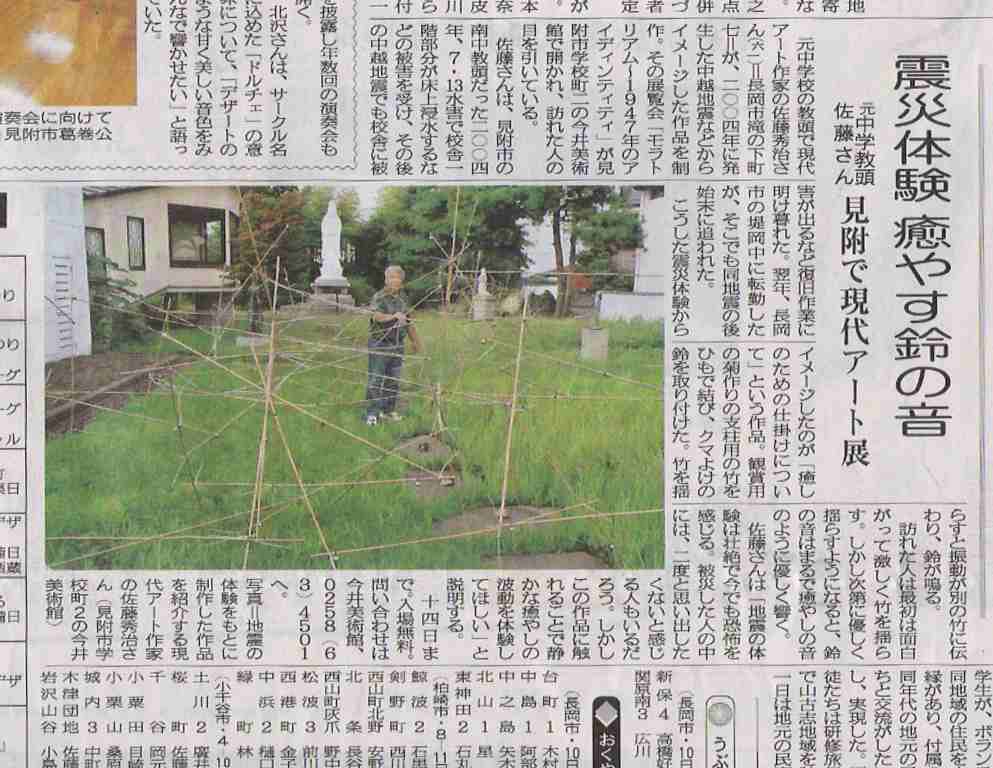 今朝の新潟日報に、開催中の佐藤秀治展の記事が掲載されています。長岡地区版の掲載なので、中越地区以外だと載ってないかもしれませんが。 (画像をクリックすると大きくなります。)