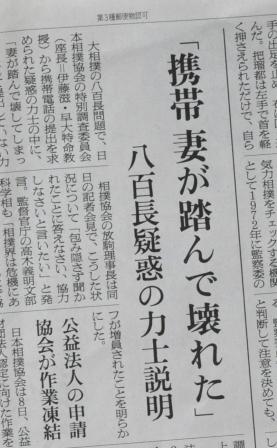 疑惑の力士にいまごろ携帯電話を出せと言っても、まともに出てくるわけはないと思うのだが、どうなのか。「妻が踏んで壊れる」かどうか、試したことないからわからないが、この記事を見て、昔流行した「象が踏んでも壊れない」アーム筆入れのことを思い出した。アーム携帯と称した、象が踏んでも壊れない携帯があればよかったのにね。