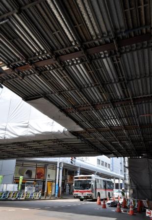 写真はペデストリアンデッキ建設工事進行中の長岡駅前。日々進行するさまを面白く観察している。
