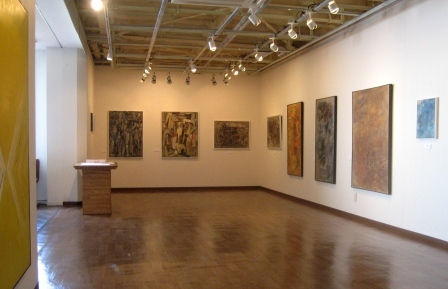 今回展示した作品群はそれまでの15年間のもので、私の抽象絵画の変容を観ていただければ幸いですが、それは現代美術という風が吹き荒れているなか、上野の公募団体に出展していた頃でもありました。このあと、私は上野の山から離れ、版という新たな世界で平面空間そのものの抽象へと向かい、油彩表現からは決別して今に至るのですが、そのひとつの時代の作品群といえましょう。