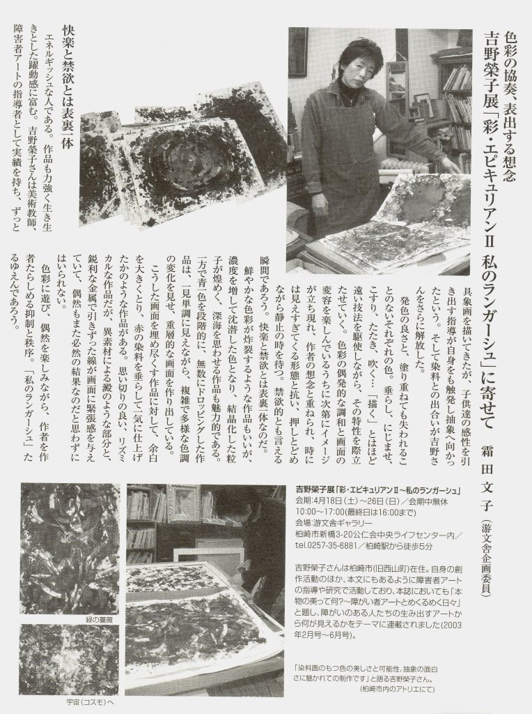 ~吉野榮子展「彩・エピキュリアンⅡ~私のランガーシュ」に寄せて~