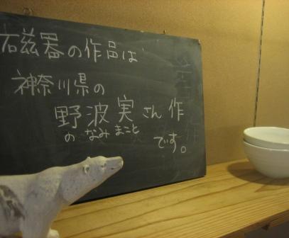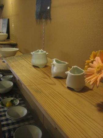 今回並べているのは、ペンギンをイメージして制作した「ペンギン注器」やお皿。ちなみに上の画像、看板のところにいるシロクマ(陶)は、野波さんではなくショップオーナーの広川さん作。