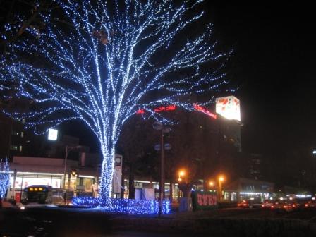 画像はこのイベントとはまったく関係なく、イルミネーションの長岡駅前を。新聞でも報道されたのだが、夜はカラスの住み家となっているらしい。