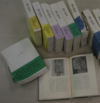 他に瀧口修造全集などもそろっているが、痛んだ箱には地震のつめ跡も残る。