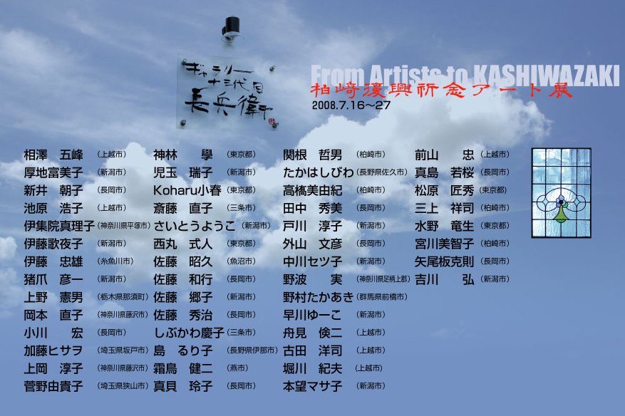 7月16日、中越沖地震から1年となります。本展はその節目に「街が元気になれることを何かしたい」と、作家有志により企画いたしました。