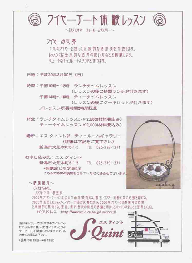 ・3月30日(日):ワークショップあり(ワイヤーアートの体験教室)
